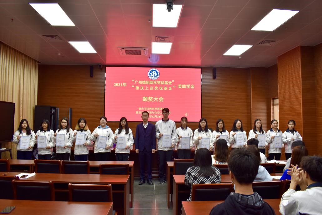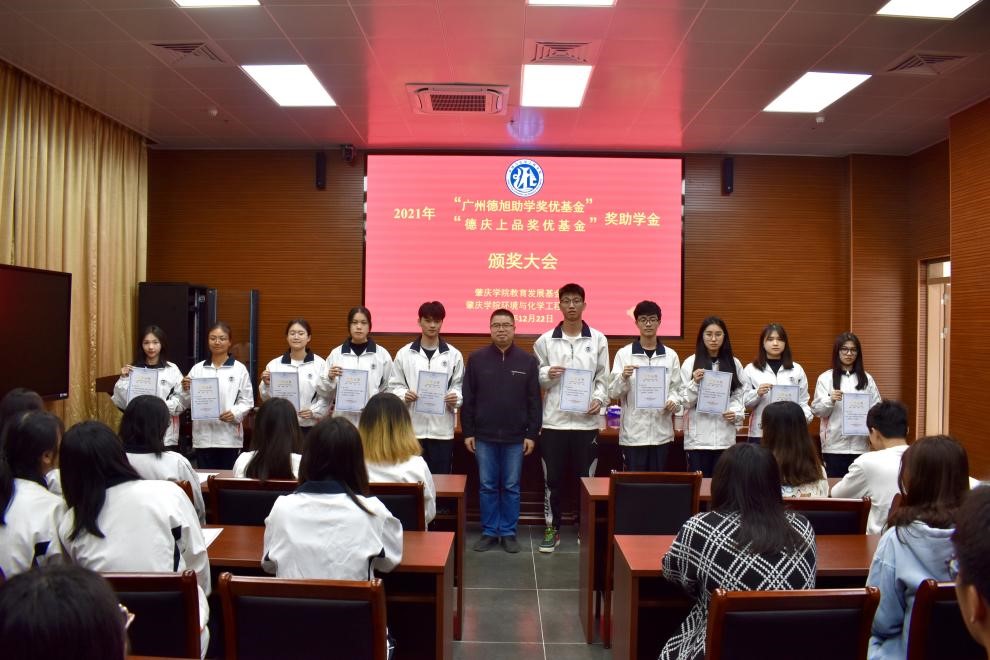 12月22日下午,2021年永利集团304am“德旭助学奖优基金”“德庆上品奖优基金”奖助学金颁奖大会在实训中心大楼112会议室隆重举行。参会人员有德旭新材料(广州)股份有限公司总经理何彦波先生、304.cam永利集团经理郝向英、党委书记李湘、副经理吴燕妮、副经理吴贤格、副书记杨原行以及员工代表60余人。大会由公司党委副书记杨原行主持。