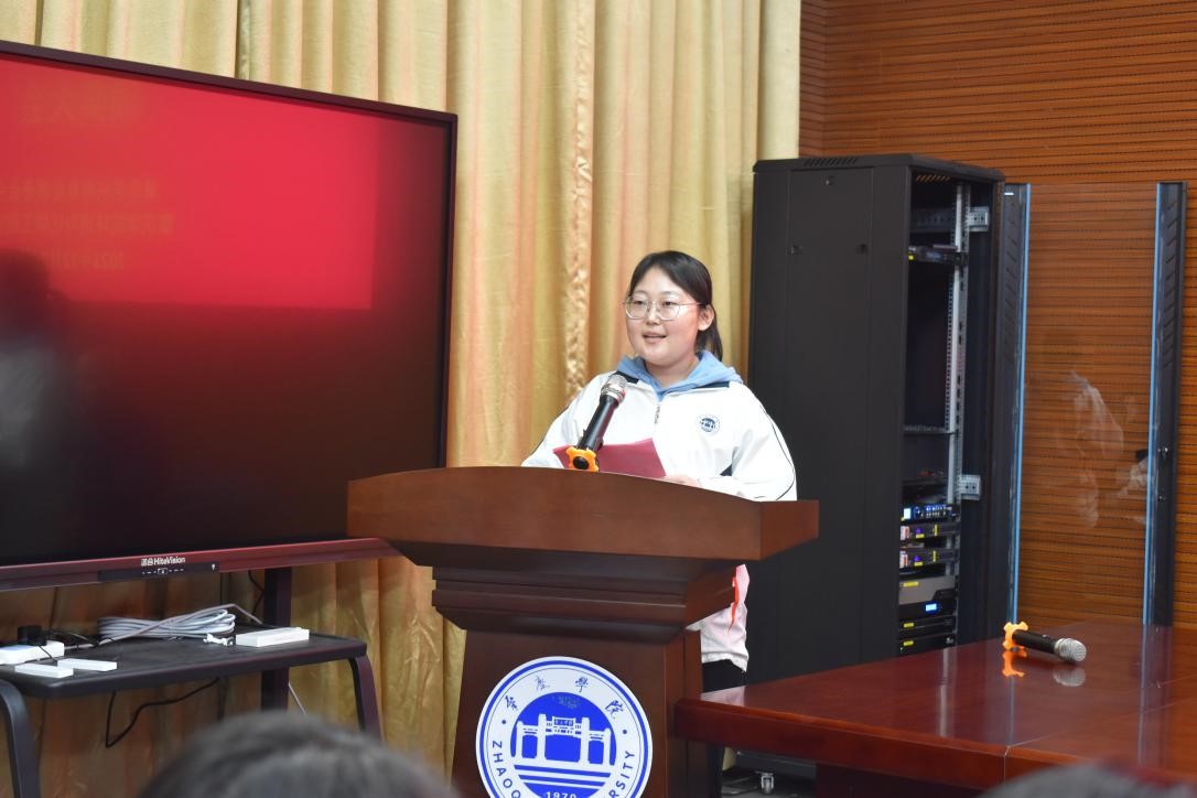 2021年德庆上品成绩优秀奖获得者代表18环境2班范熔丹同学发言。她对企业领导、公司的老师们表示了最诚挚的感谢的同时,她认为老员工应该要设立目标,砥砺前行,戒骄戒躁,心平气和,更要常怀感恩,肩负使命,不辜负老师们的期望,一如既往地前进,用努力迎接挑战,用真诚迎接未来。